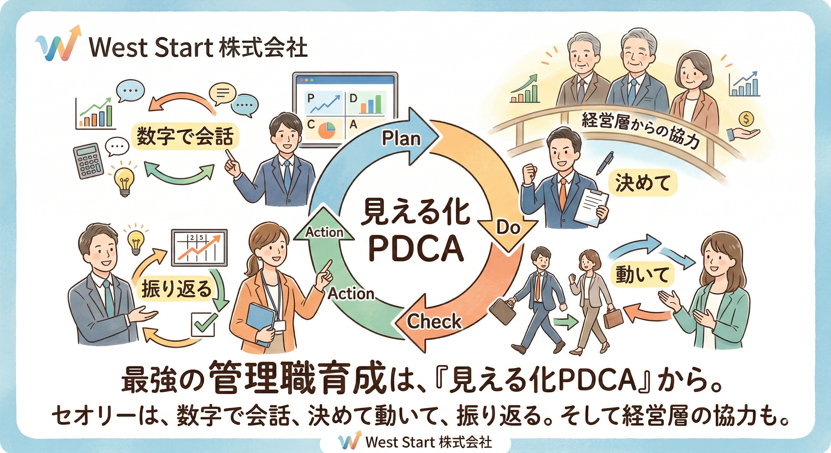 有能な管理職を育成するためには、明確なセオリーが存在します。それが**「数字で会話決めて動いて振り返る」**というサイクルを習慣化することです 。